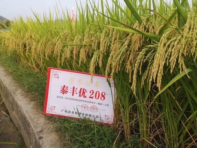 稻花香里说丰年。泰丰优208为感温型三系杂交稻组合。植株矮壮,株型中集,分蘖力中强,穗大粒多,抗倒力中强。每穗总粒数145-160粒,结实率73.6%-74.5%,米质鉴定为省标优质3级。